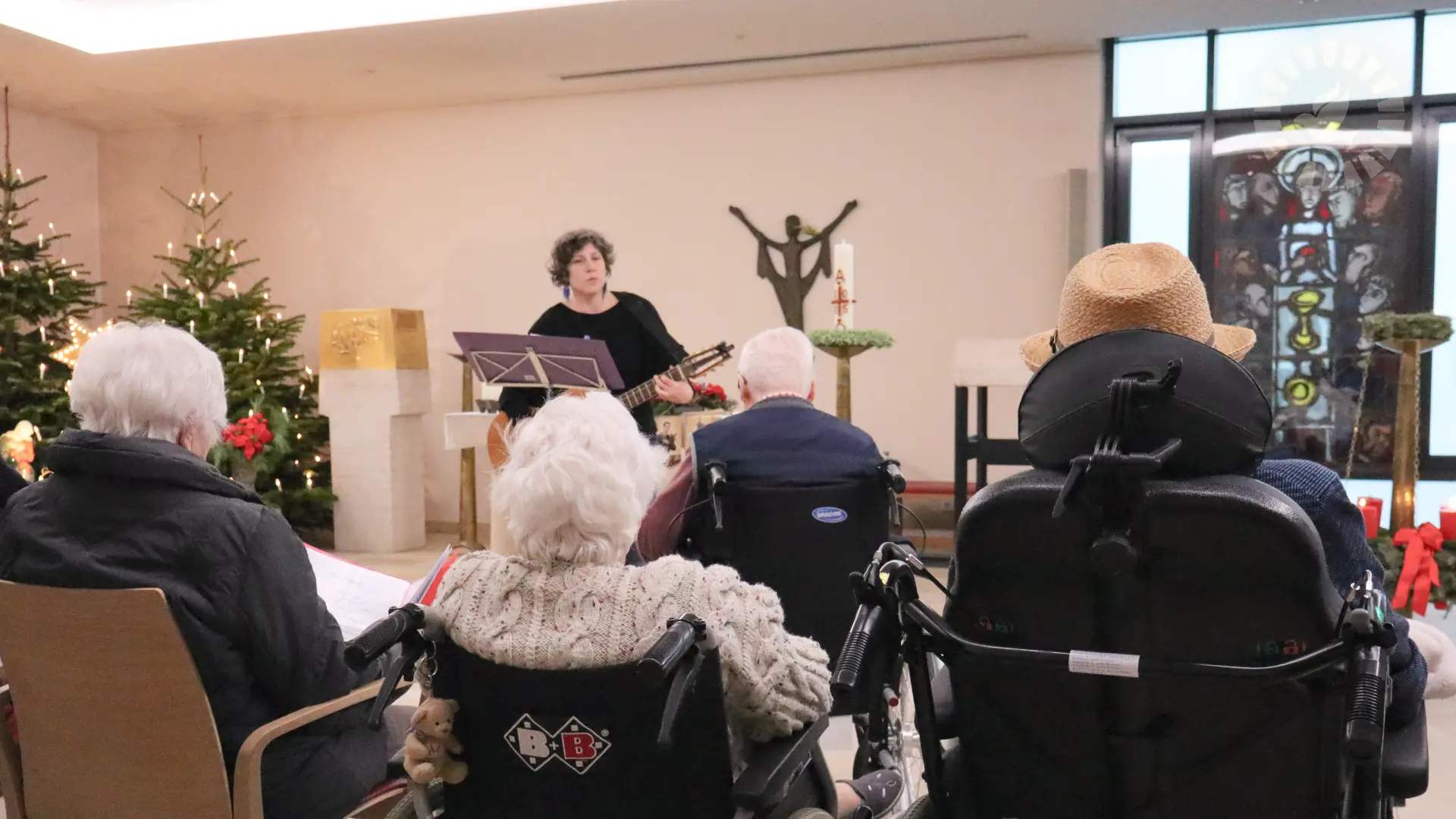 Am 3. Advent, dem 14. Dezember 2025, wurde die Kapelle zu einem Ort der Ruhe und Besinnlichkeit. Die Bewohnerinnen und Bewohner erlebten ein stimmungsvolles Gitarrenkonzert, das ganz im Zeichen der Adventszeit stand. Die warmen Klänge der Gitarre schufen von Beginn an eine Atmosphäre, die zum Innehalten und Genießen einlud.